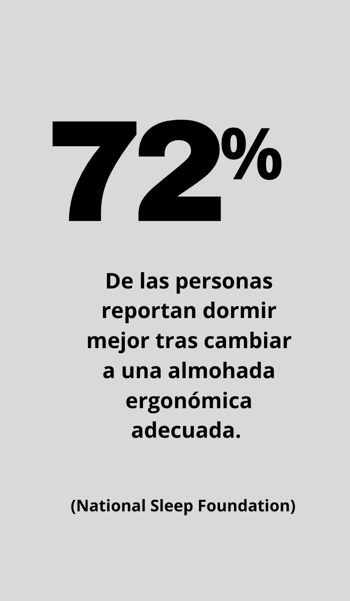 72% de las personas reportan dormir mejor tras cambiar a una almohada ergonómica adecuada. (National Sleep Foundation)
